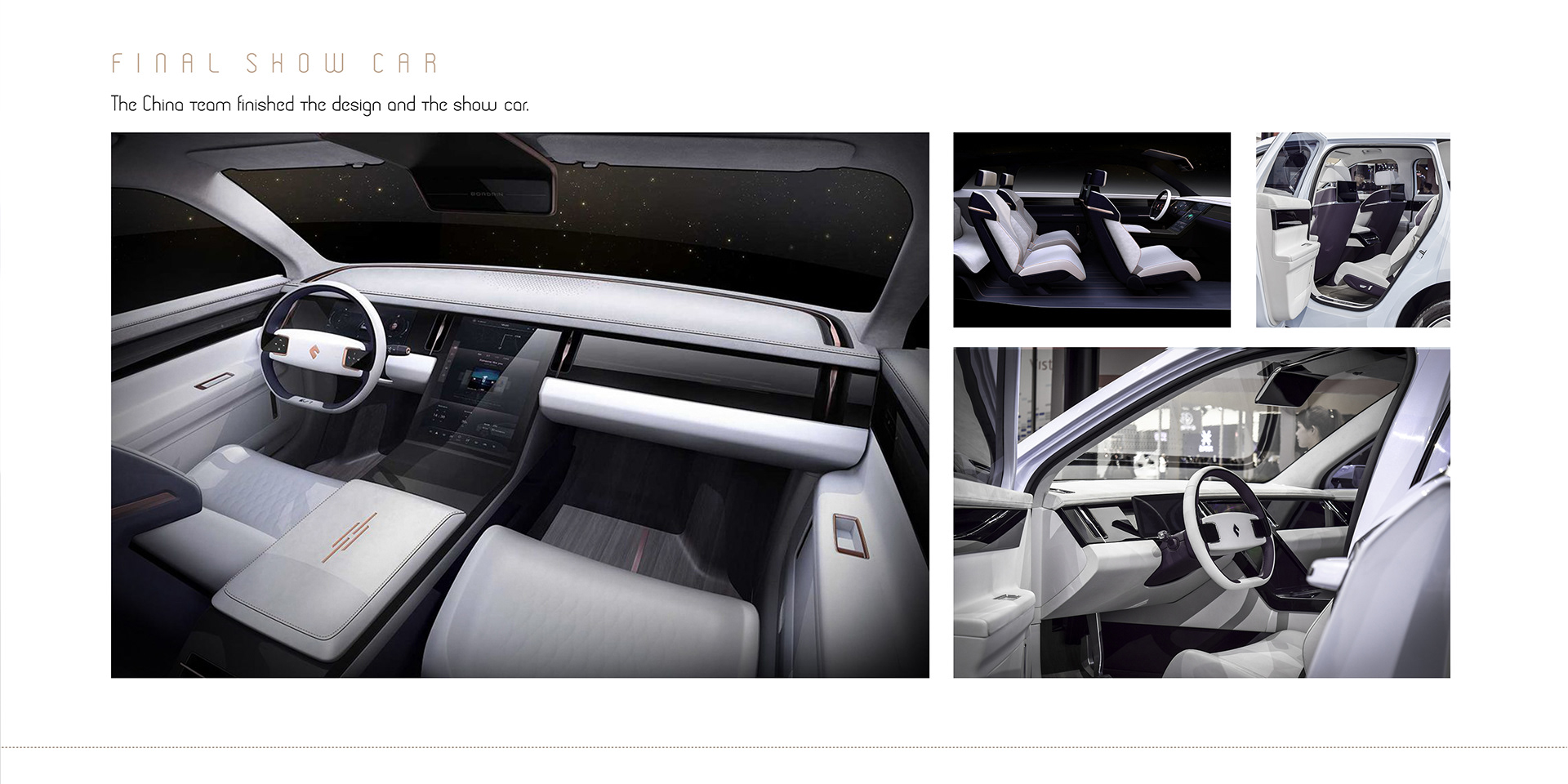 The Bordrin iv7 made its debut at the 2019 Shanghai Auto Show as a production-intent concept, signaling the brand’s design direction with clarity and confidence. Its form is defined by clean, reductive surfaces and a carefully resolved silhouette, expressing a bold yet understated aesthetic. The result is a modern, minimalist interpretation of luxury—where proportion, precision, and restraint work together to elevate the overall experience.